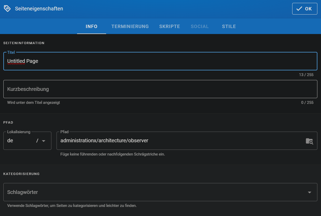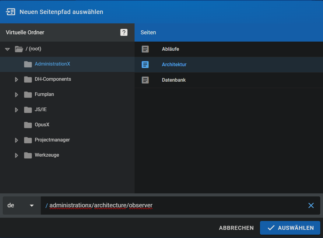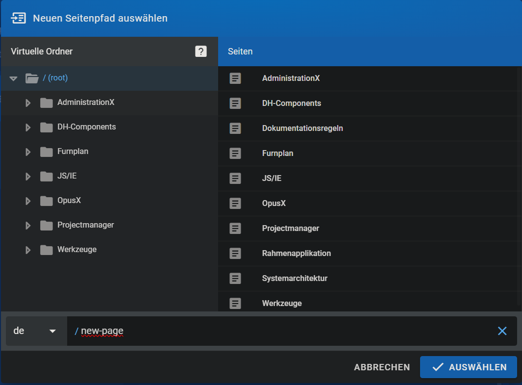 Wichtig hierbei ist, dass der Pfad immer auf Englisch erstellt wird, denn dieser muss unter allen Sprachkürzeln gleich sein.