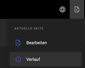 Dafür kann oben rechts auf das Symbol zum Bearbeiten der Seite geklickt werden und dort auf Verlauf.